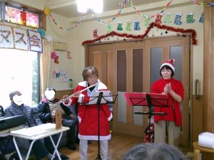 利用者の皆さまと一緒に、歌やレクリエーションを楽しみ、笑顔あふれるひとときとなりました。その際のご様子です。